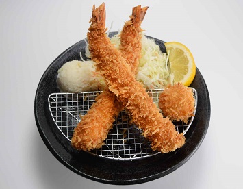 大ぶりのブラックタイガー2匹に、ホタテフライも付いてボリューム満点。
