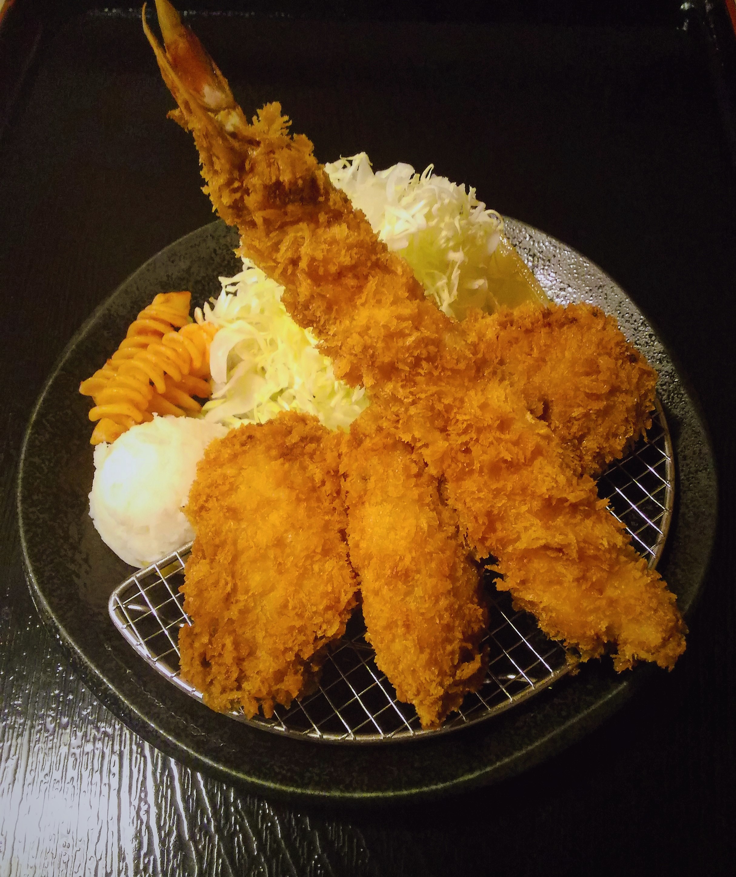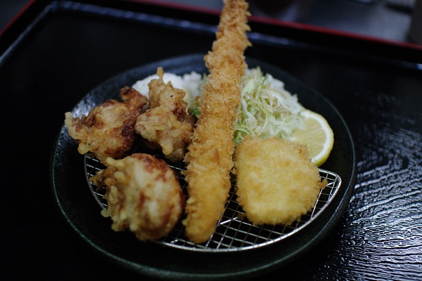 大ぶりの海老フライ、唐揚げをのせたお値打ちメニュー。