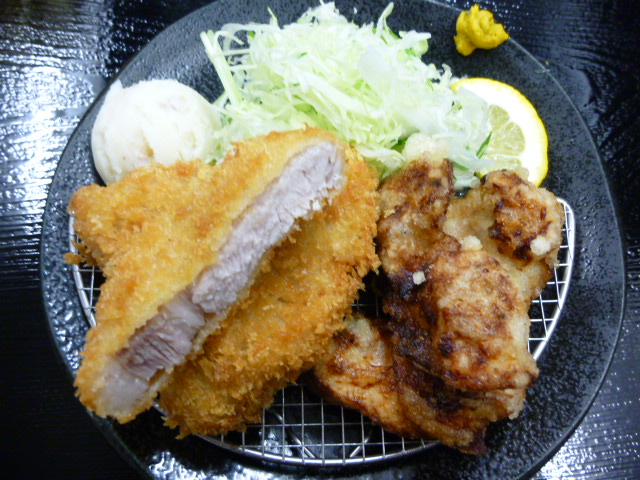 当店人気の四万十ポークのとんかつと、カリッと揚がった唐揚げの組み合わせ☆