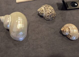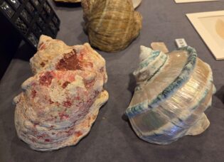 螺鈿細工に使用される貝が展示されている。