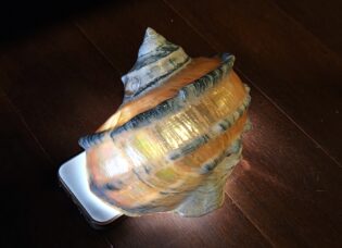 なんといっても目を引くのは、迫力ある大きな巻貝が、まるで巨大な真珠のように輝いている姿だ。