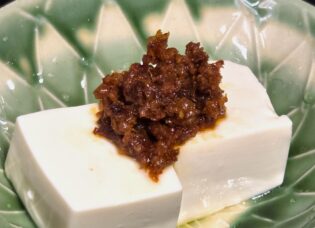 「よかっと醤」をのせて落花生油をかけるだけ。 もちろん冷ややっこでも美味しい!お酒のアテにもなる一品