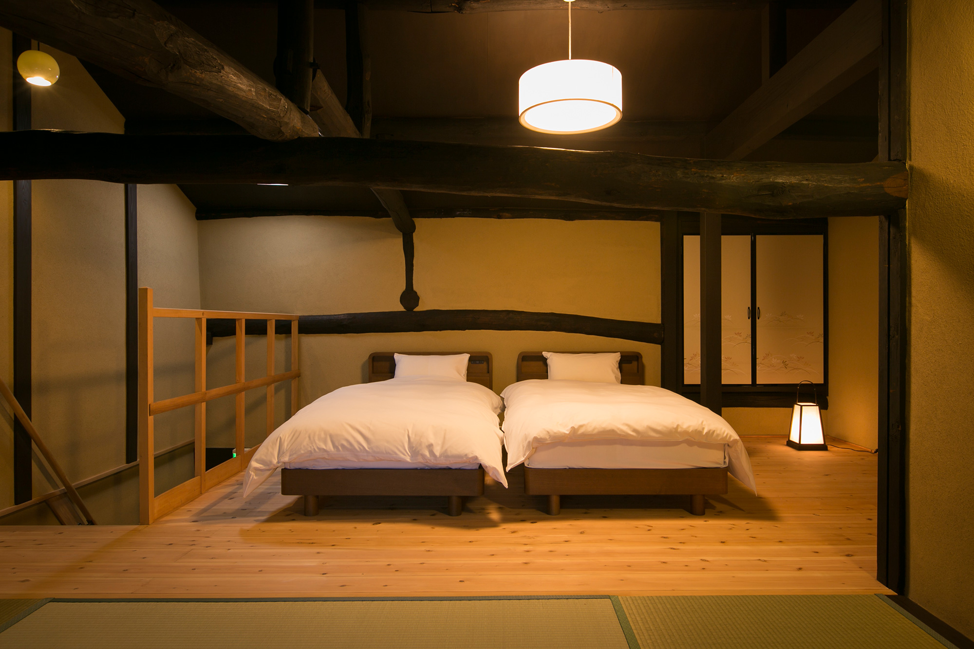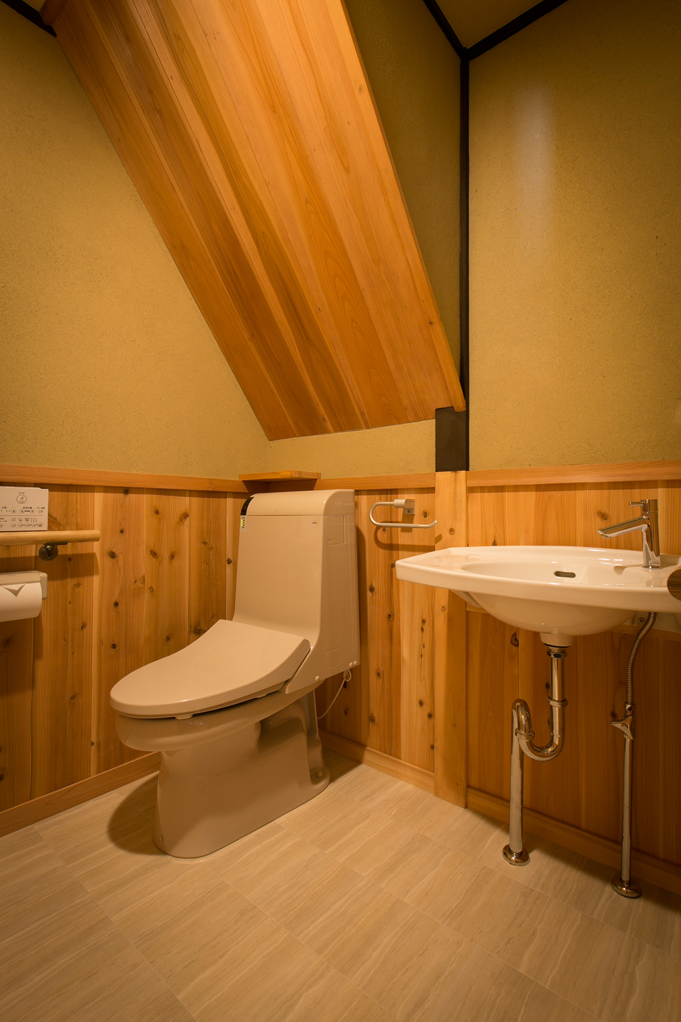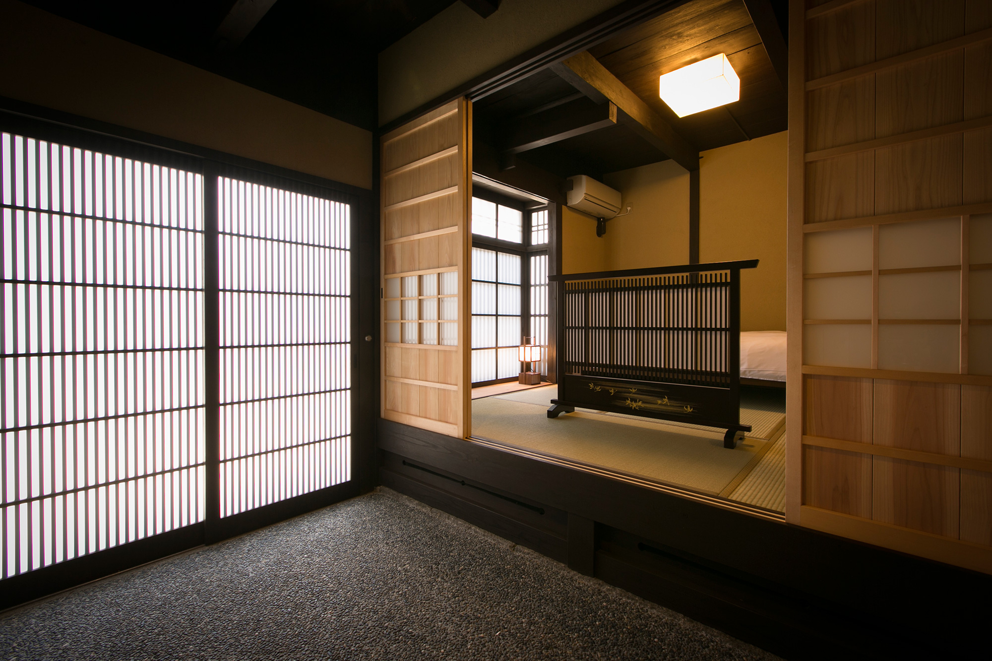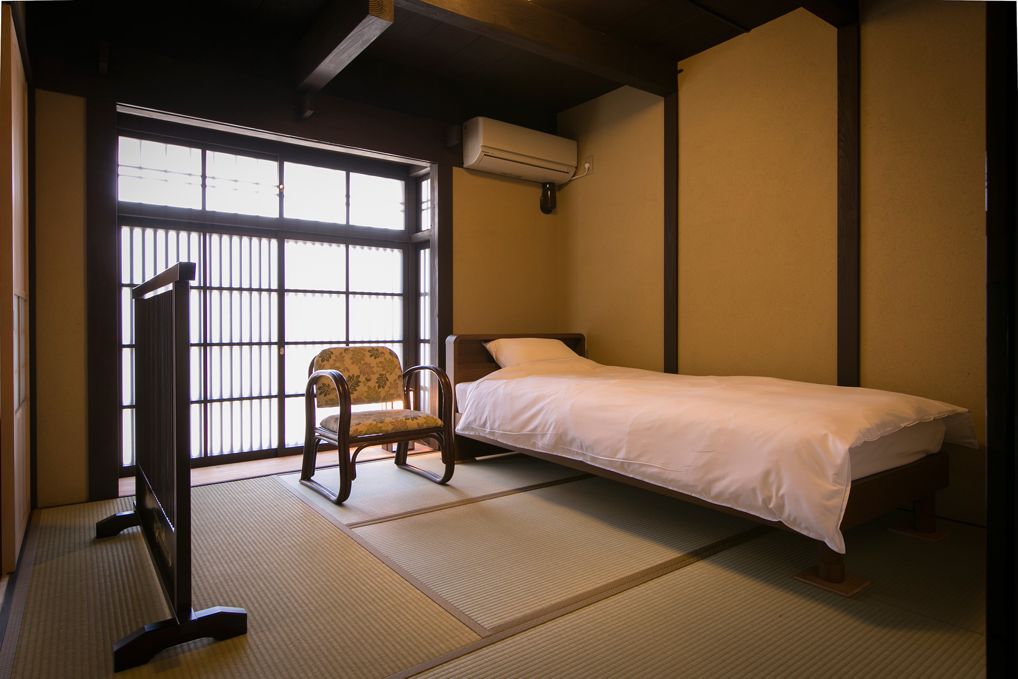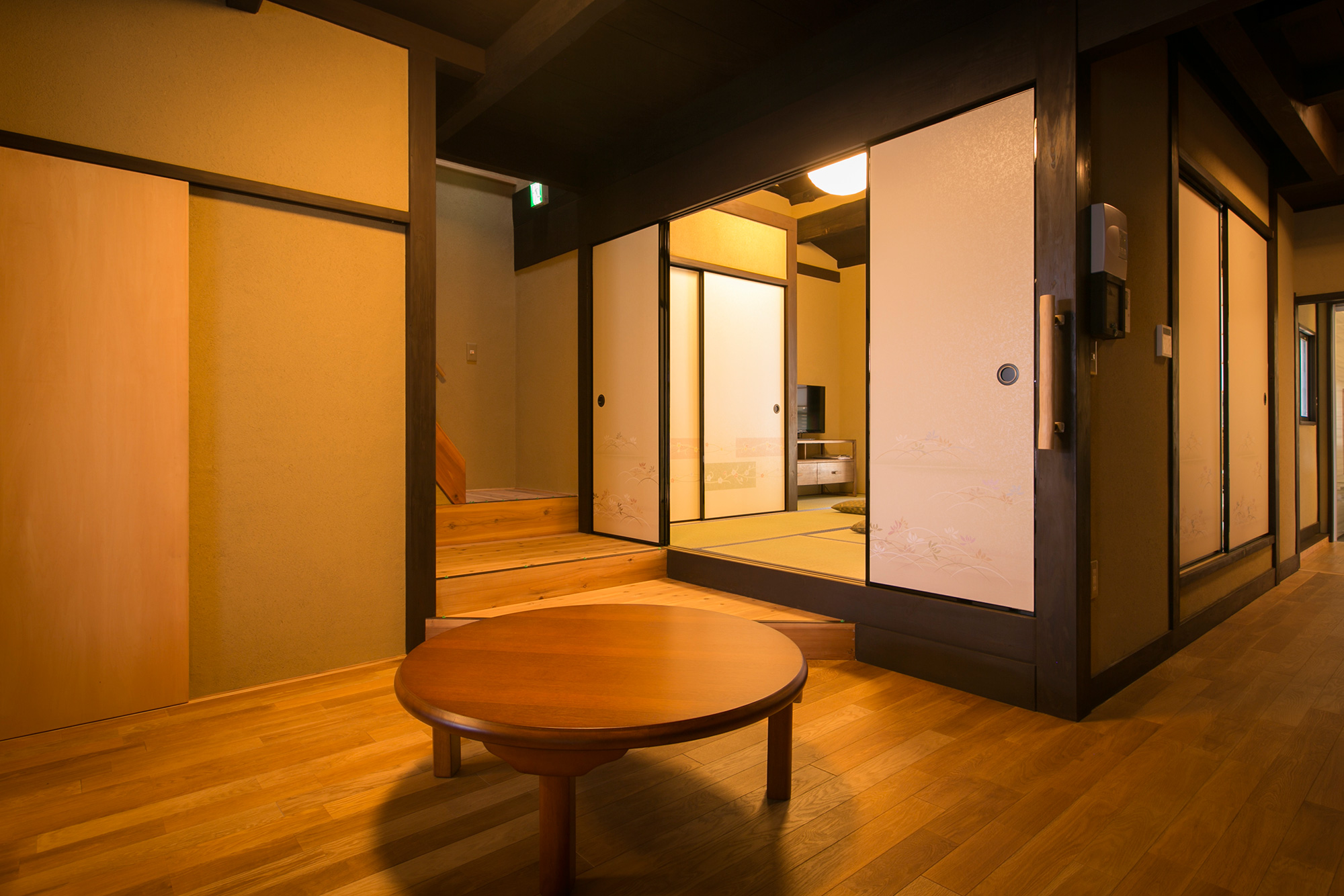 The ramp in the 1st floor is minimized, and the hall way is designed wide for easy access. A bed is provided in the Japanese style room next to the entrance for you to lie down, relax, and relieve the fatigue of the journey.