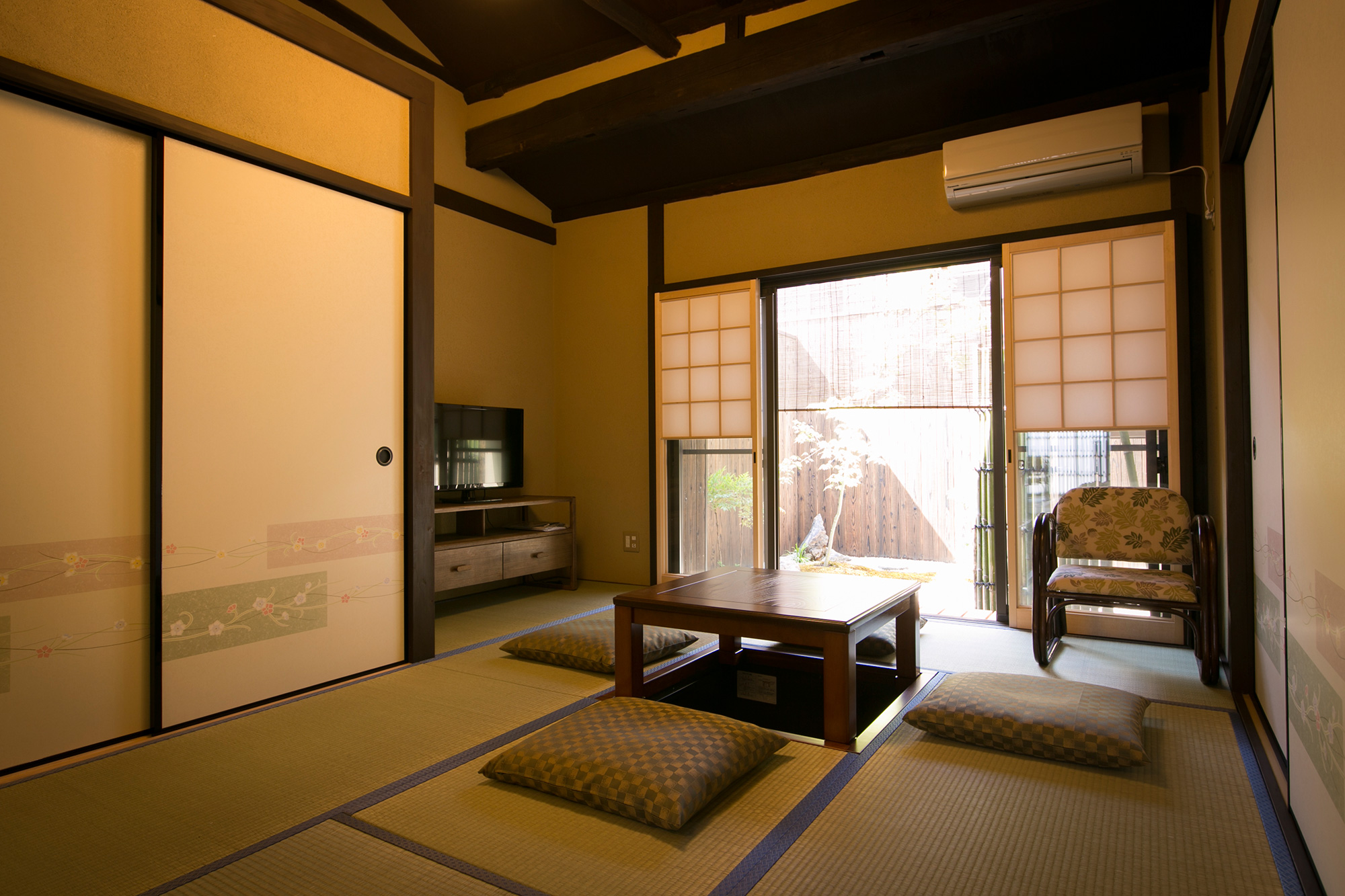 Relax at the cosy sunken ‘kotatsu’ table.