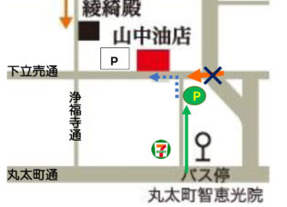 丸太町通りより旧智恵光院通(※)を北上いただき、